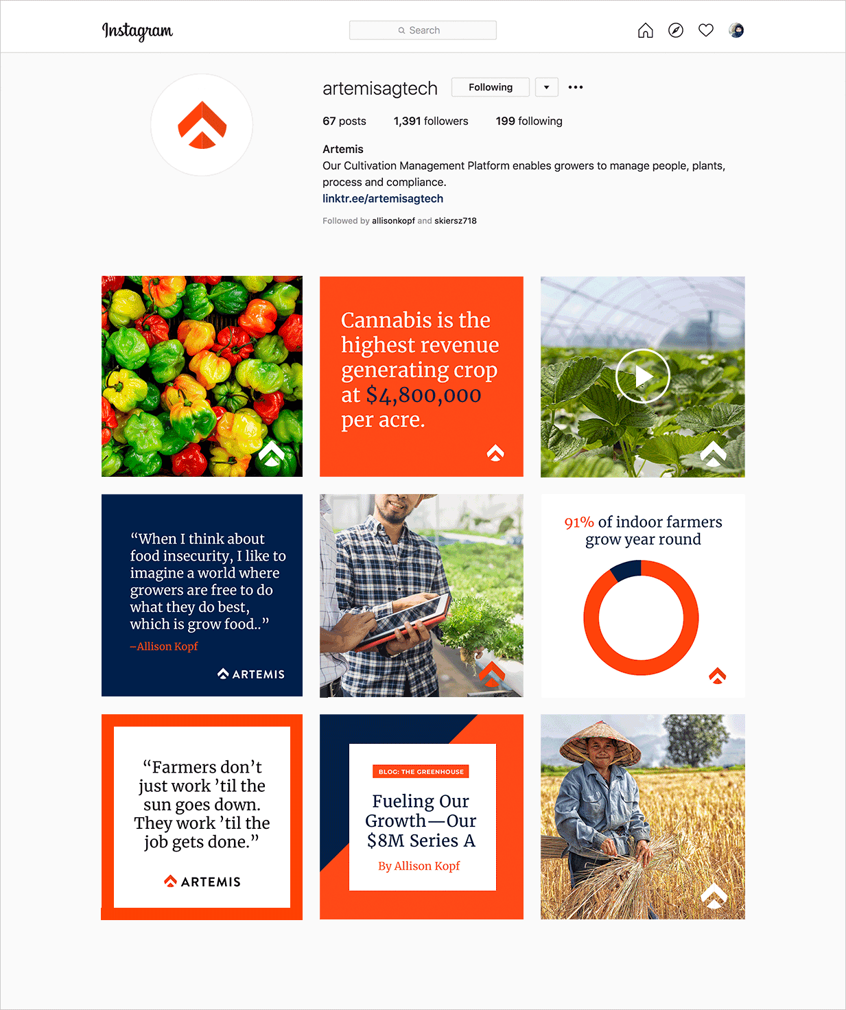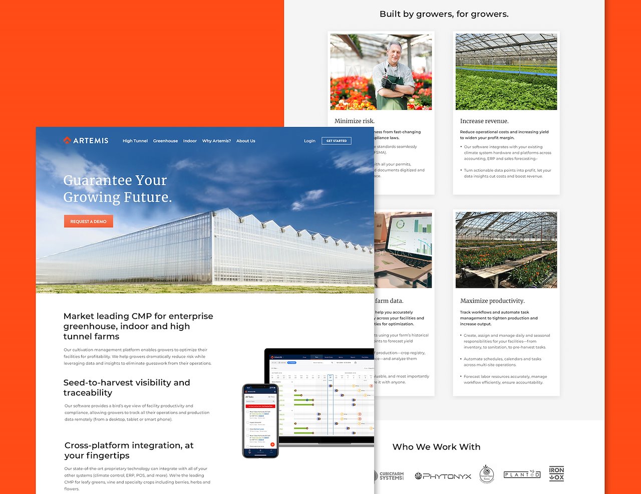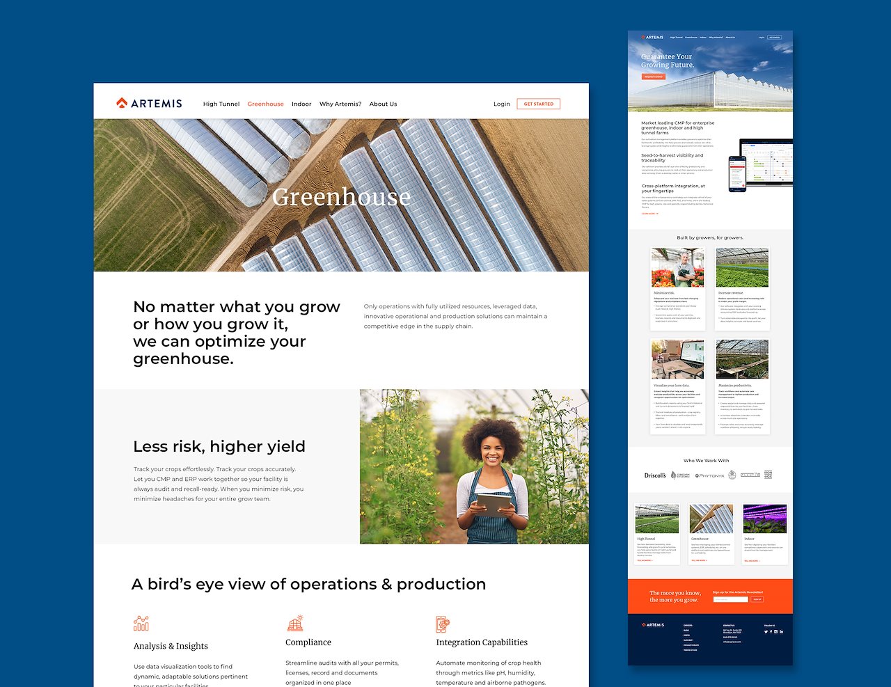 Agrilyst, an AgTech startup, was evolving as a business. Its cultivation management platform was gaining traction globally and with larger enterprises, but it still had a startup brand. Agrilyst needed new positioning, new messaging and a new look. We worked with Agrilyst to rename the company to Artemis.