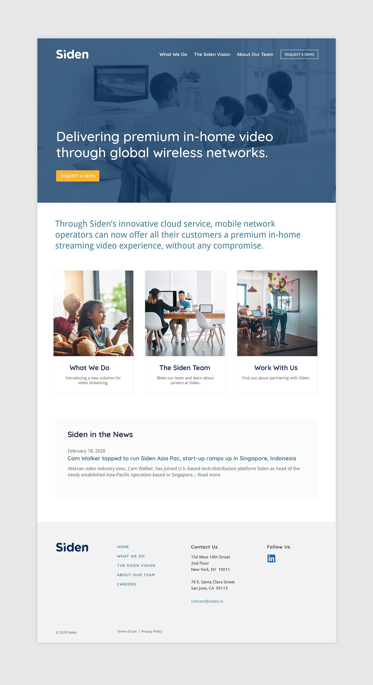 The goal of this first phase of Siden’s web presence was to give the audience enough information to indicate they are a real and growing company.